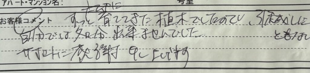 🌳 大型植木当日処分についてお客様より感謝のお言葉をいただきました。 🌲