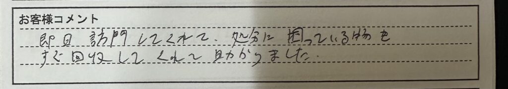 「即日訪問してくれて、 処分に困っている物をすぐ回収してくれて 助かりました。」