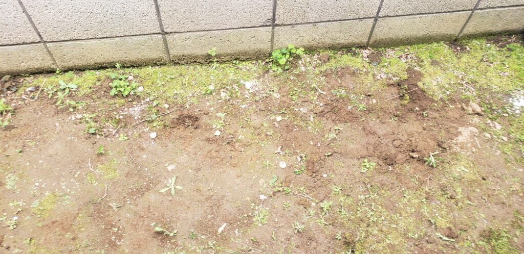 現場状況:一戸建てのお庭/搬出経路は家外周の狭い通路