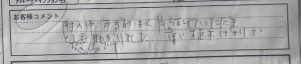 お客様より今回のクリーンワークスのお仕事ぶり、